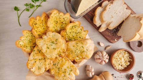 Iskoristite stari hleb i napravite specijalitet. Sastojci *1 manja vekna hleba *200 g rendane gaude * 150 g feta sira *60 g maslaca *2 čena belog...